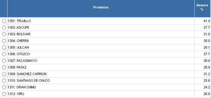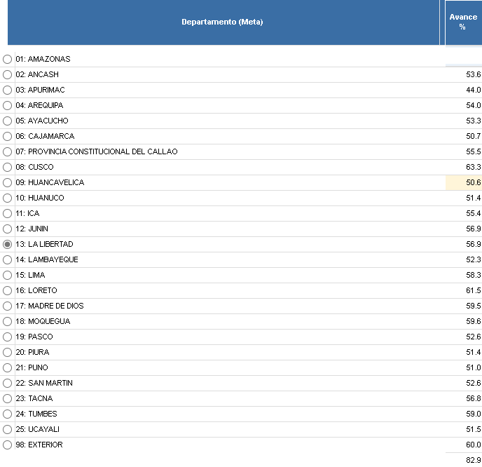 excepción de Lima que es la que tiene mayor avance con un 61.5%.